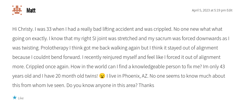 I got this comment on my blog today from Matt in Arizona, looking for a practitioner to help him.