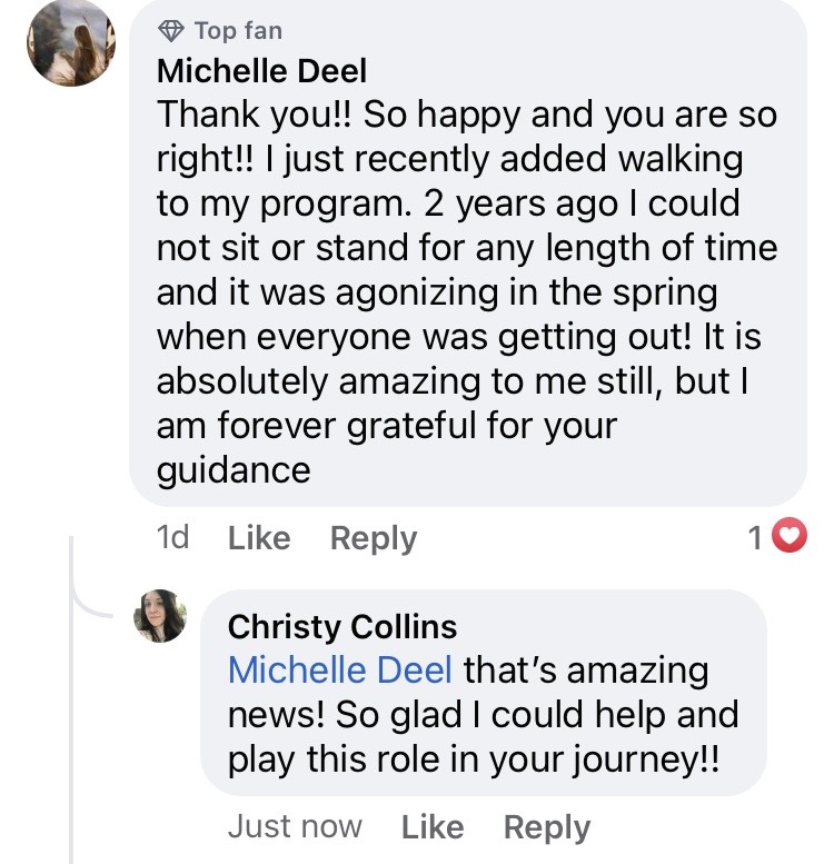 Christy gave me the confidence and correct verbiage to ask the right questions to get better answers for my pain. I’m so happy to report that I’ve been seeing a physical therapist that understands my issues and have been pain free for almost three months. First time I can say that in years! Thank you so much Christy!